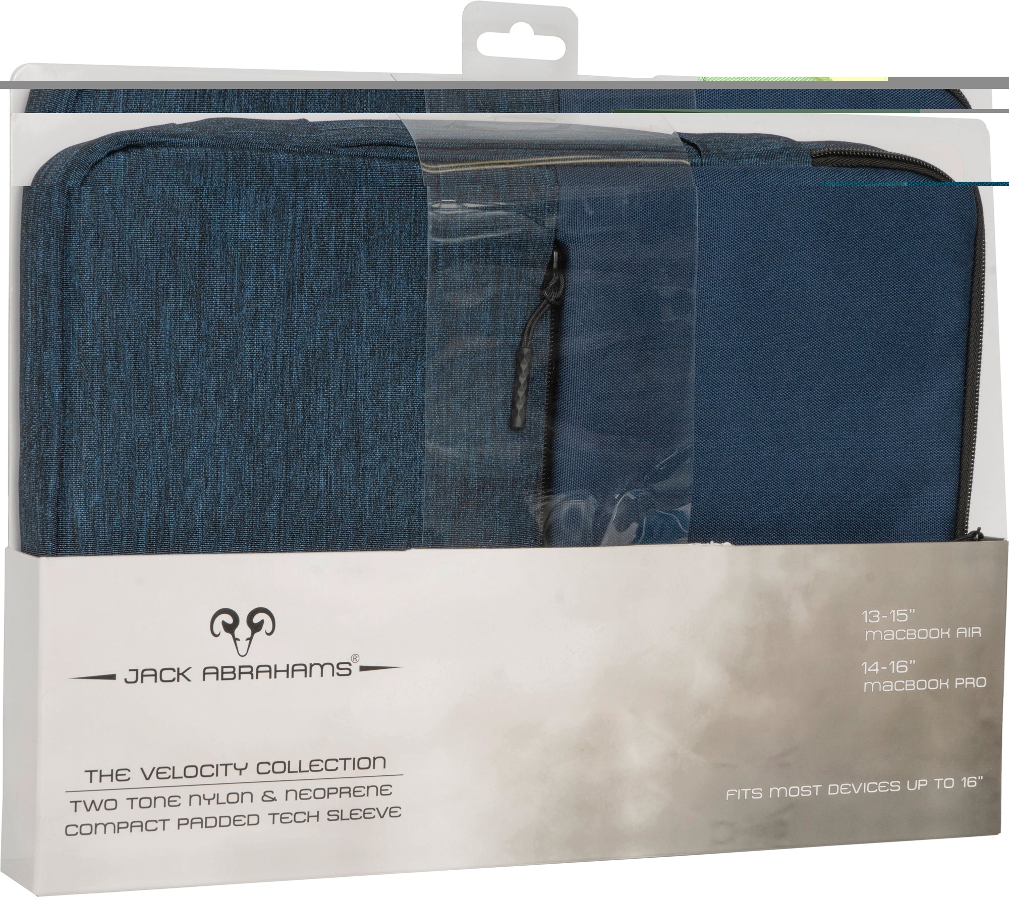 Discover the Jack Abrahams Two-Tone Nylon Velocity Protective Padded Tech Sleeve, where style and functionality come together to provide the ultimate protection for your devices. Designed to snugly fit laptops up to 16 inches, it offers a padded interior that cushions your tech from the rigors of daily life, ensuring that your devices remain safe from bumps, scratches, and accidental drops. Whether you're commuting to the office, traveling for business, or enjoying a weekend getaway, this tech sleeve is the perfect combination of elegance and security for your everyday essentials.