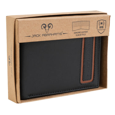 Jack Abrahams Goat Nappa Leather Bi-Fold Minimalist Wallet Black/Cognac