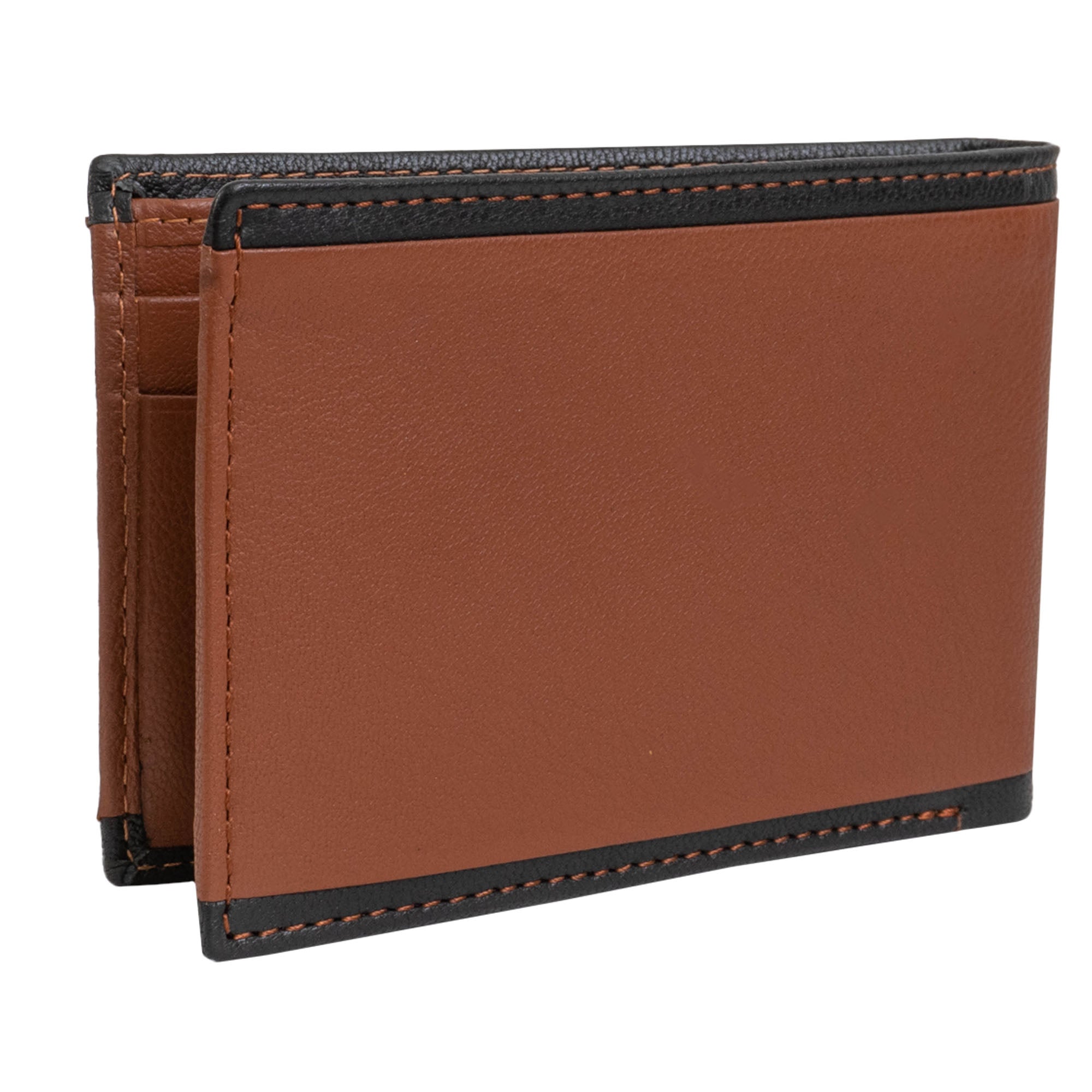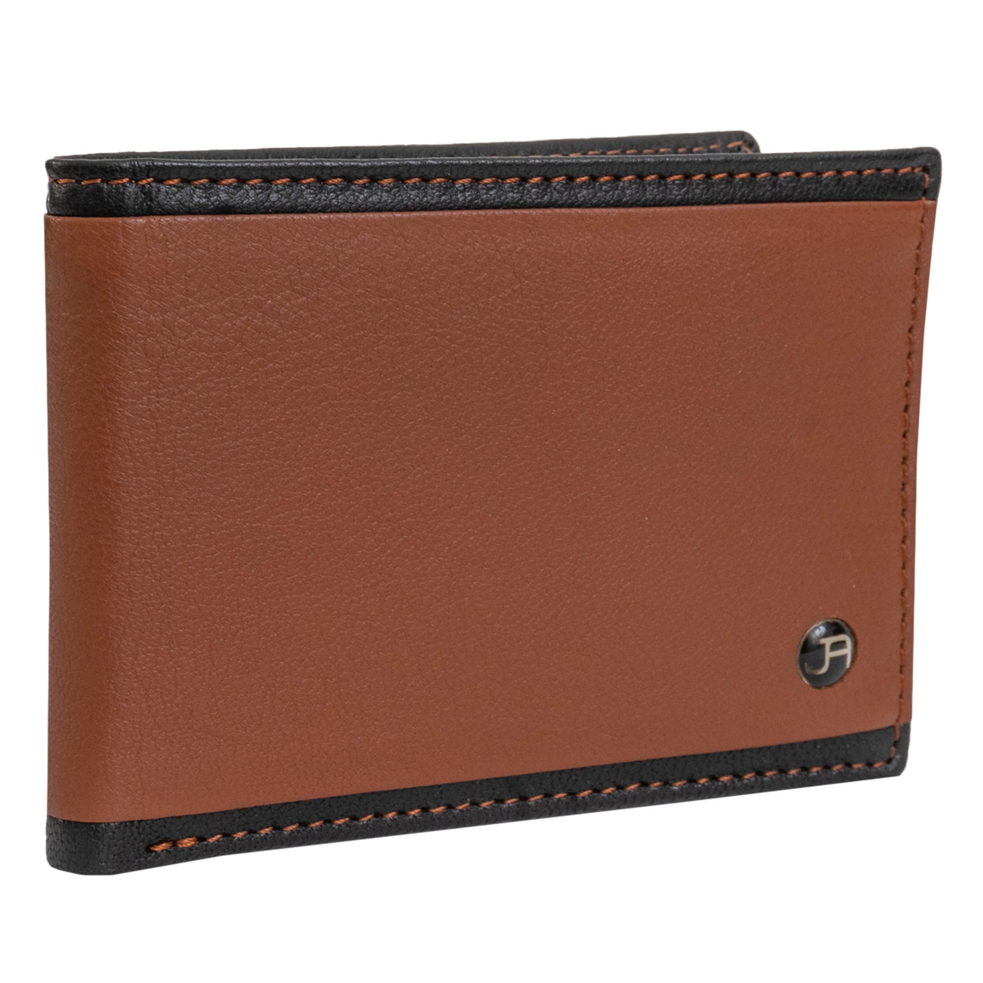 Jack Abrahams Goat Nappa Leather Bi-Fold Stylish Wallet Cognac/Black