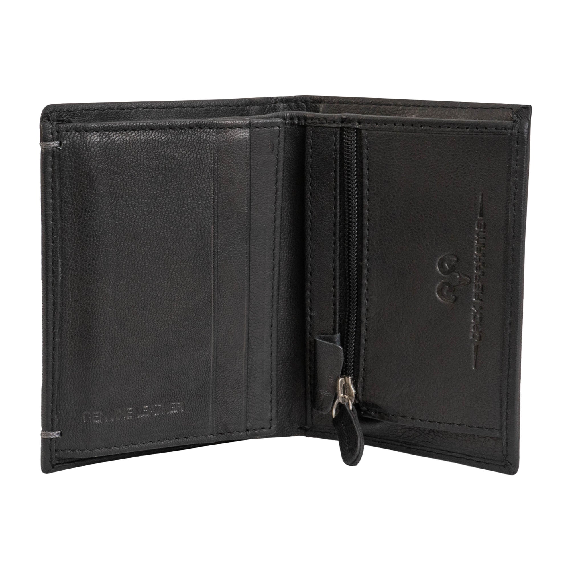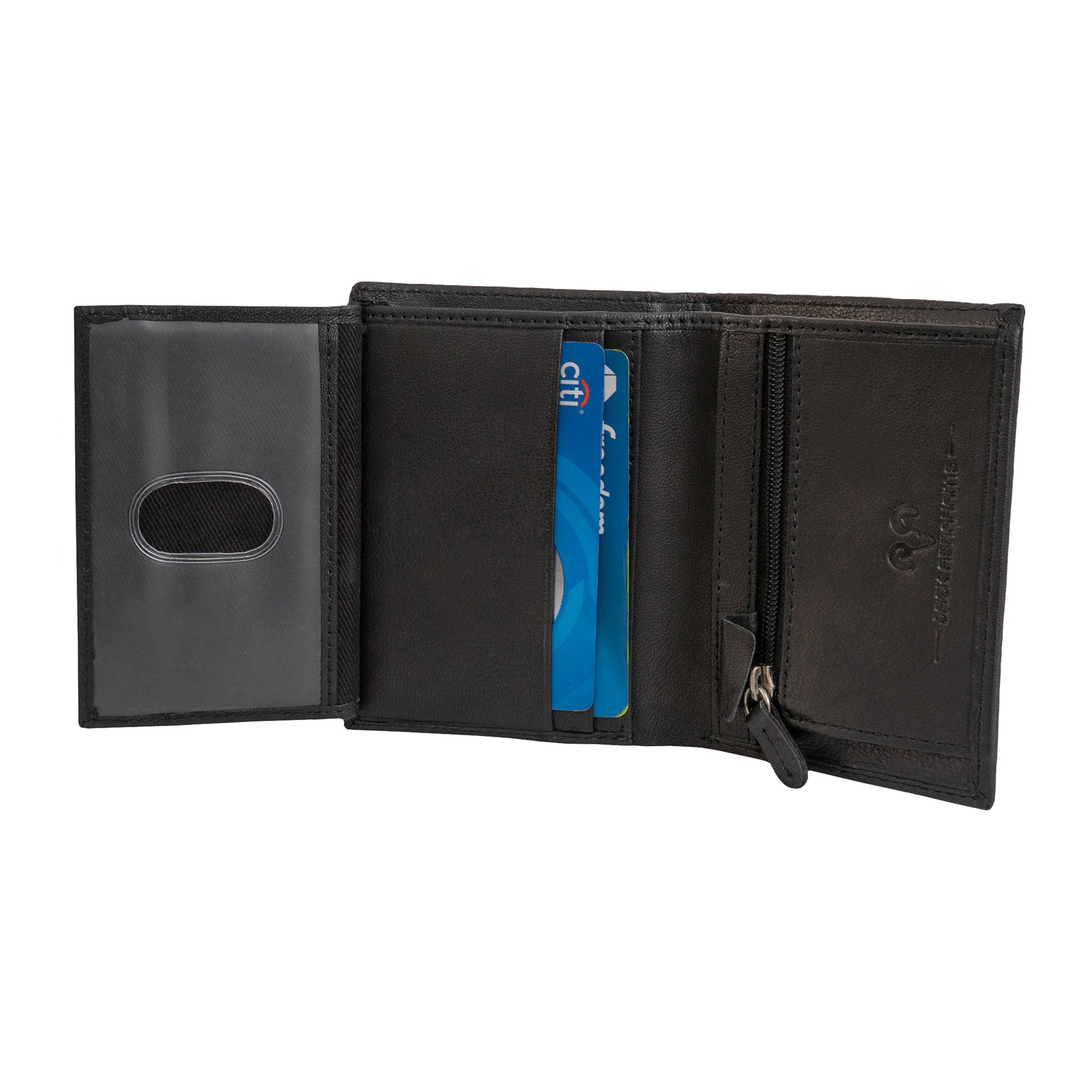 Jack Abrahams Goat Nappa Leather Bi-Fold Wallet with Zipper Pocket Black