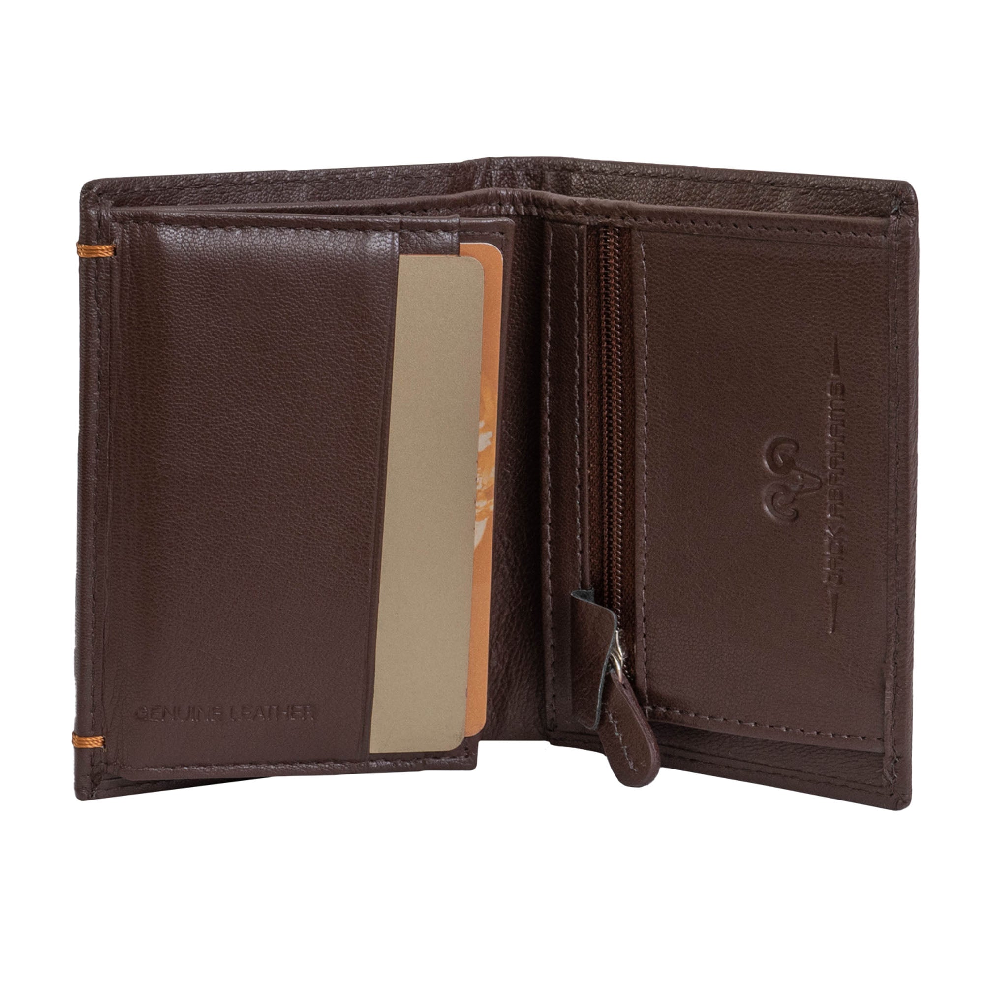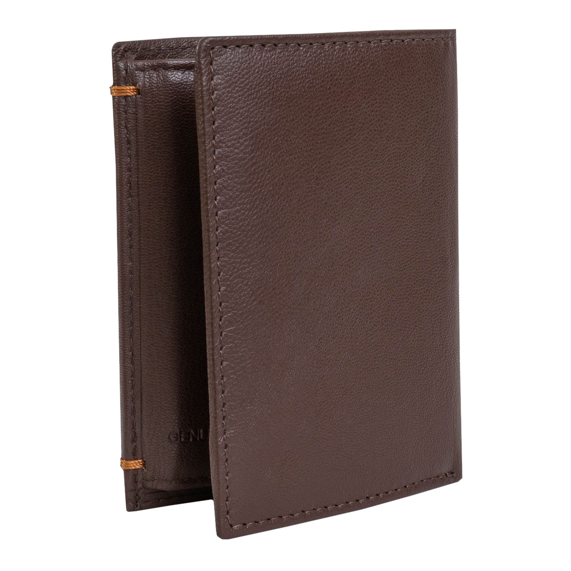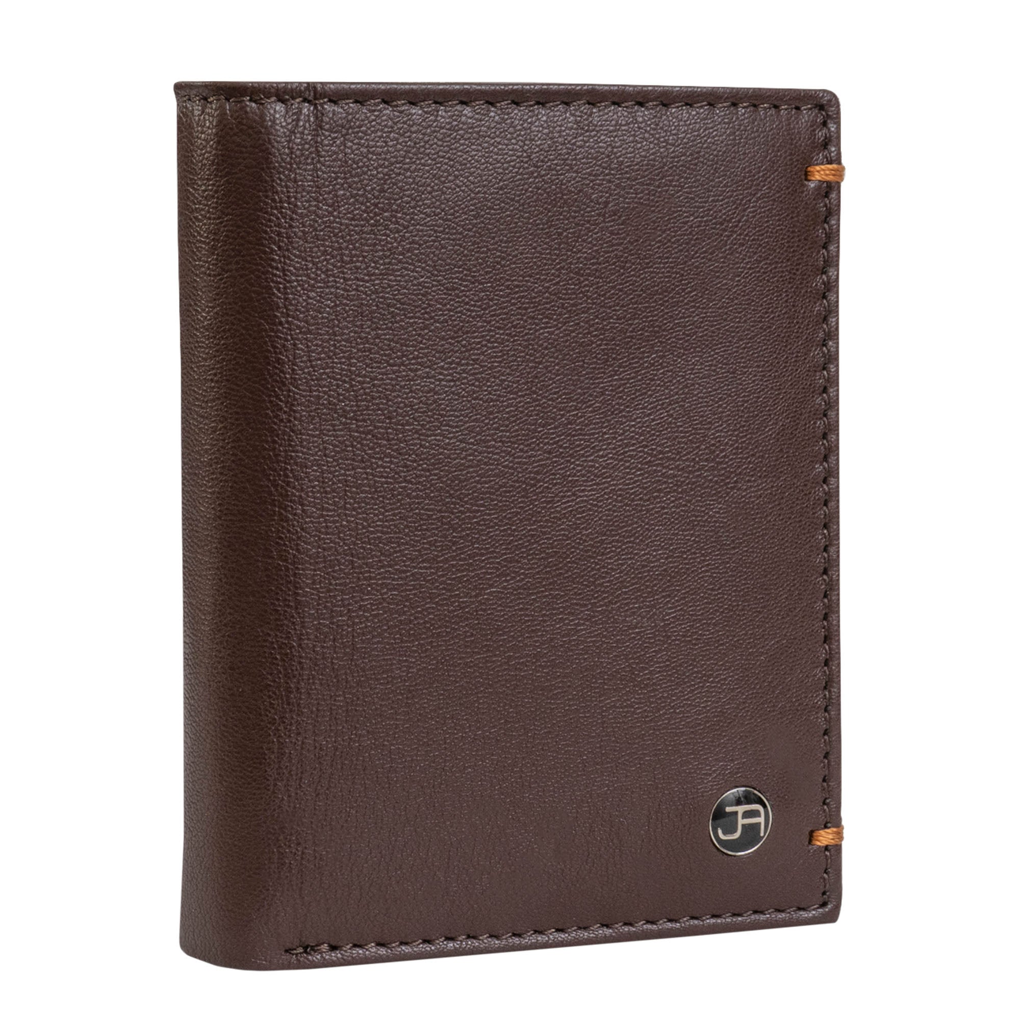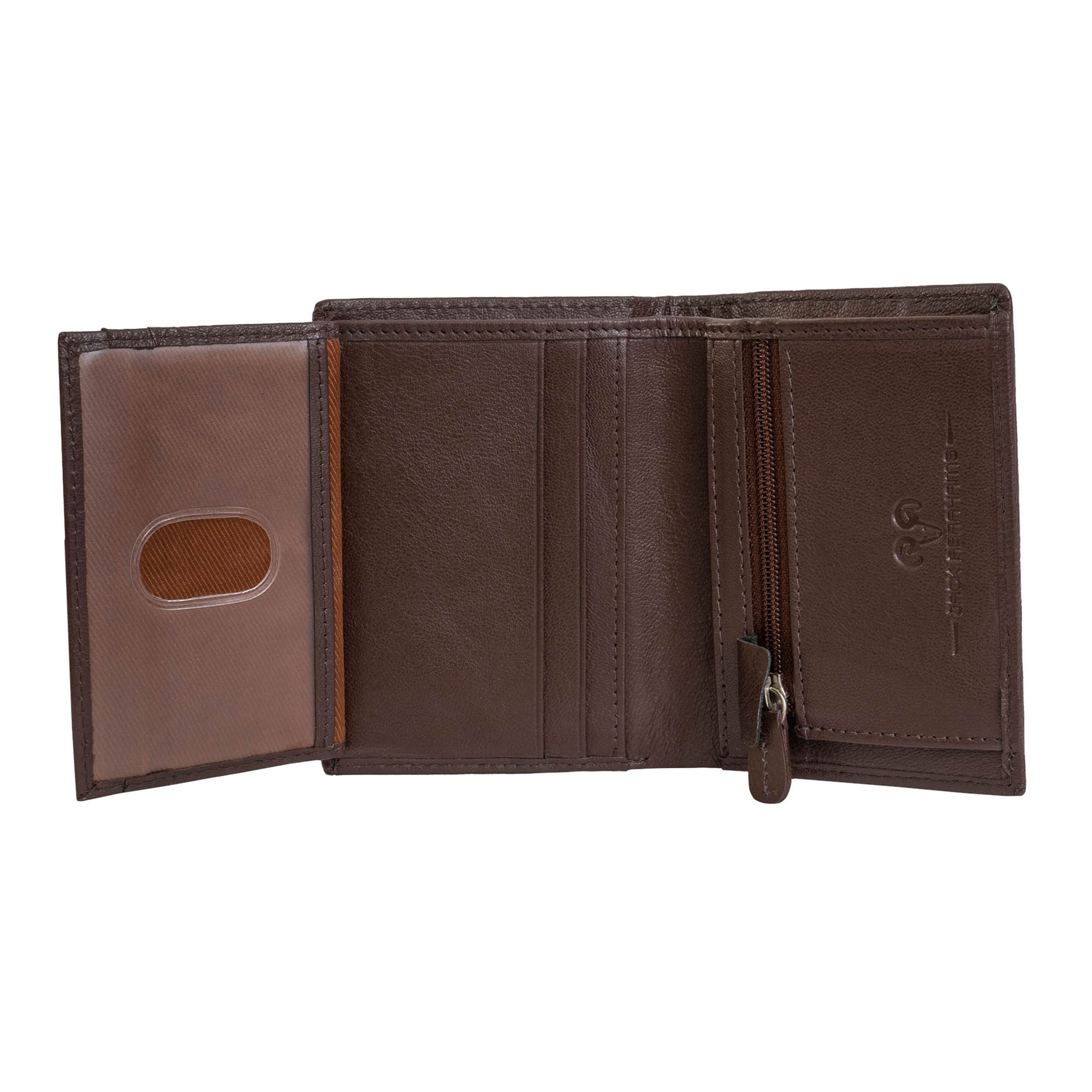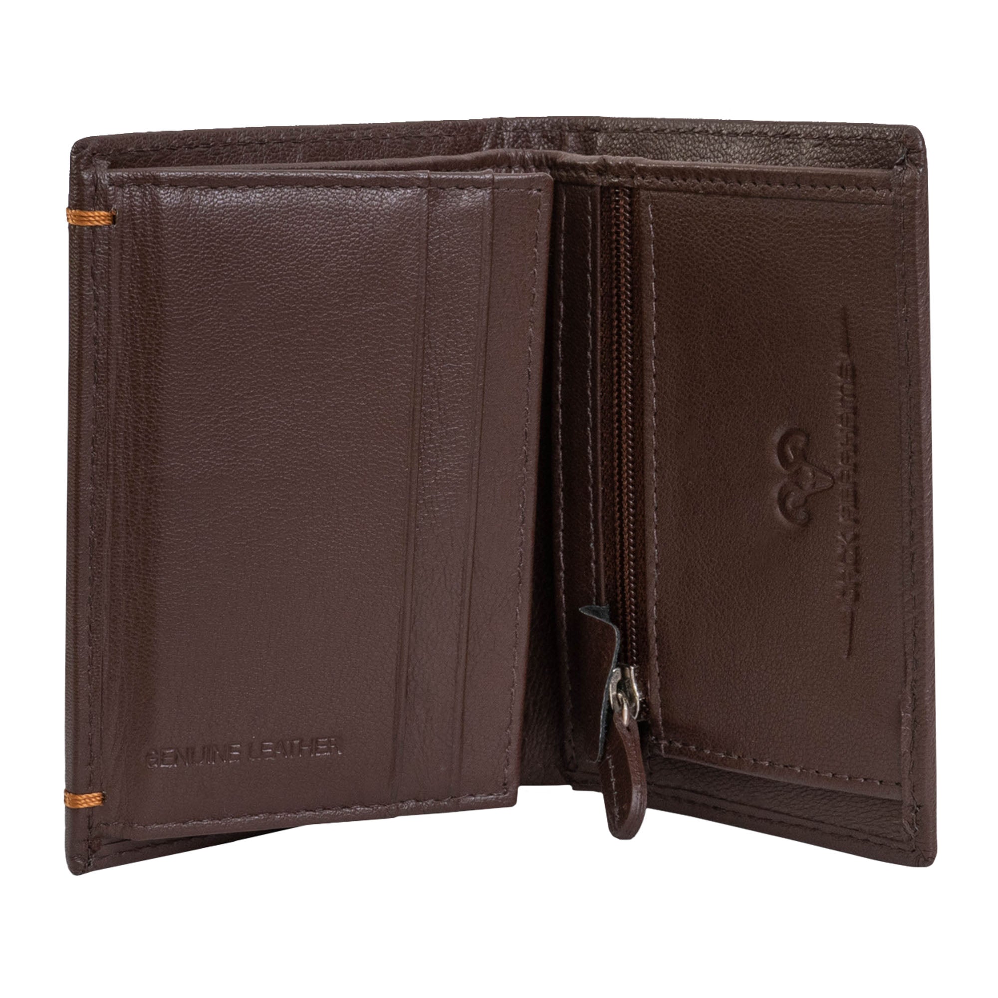 Jack Abrahams Goat Nappa Leather Bi-Fold Wallet with Zipper Pocket Brown
