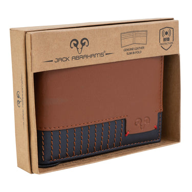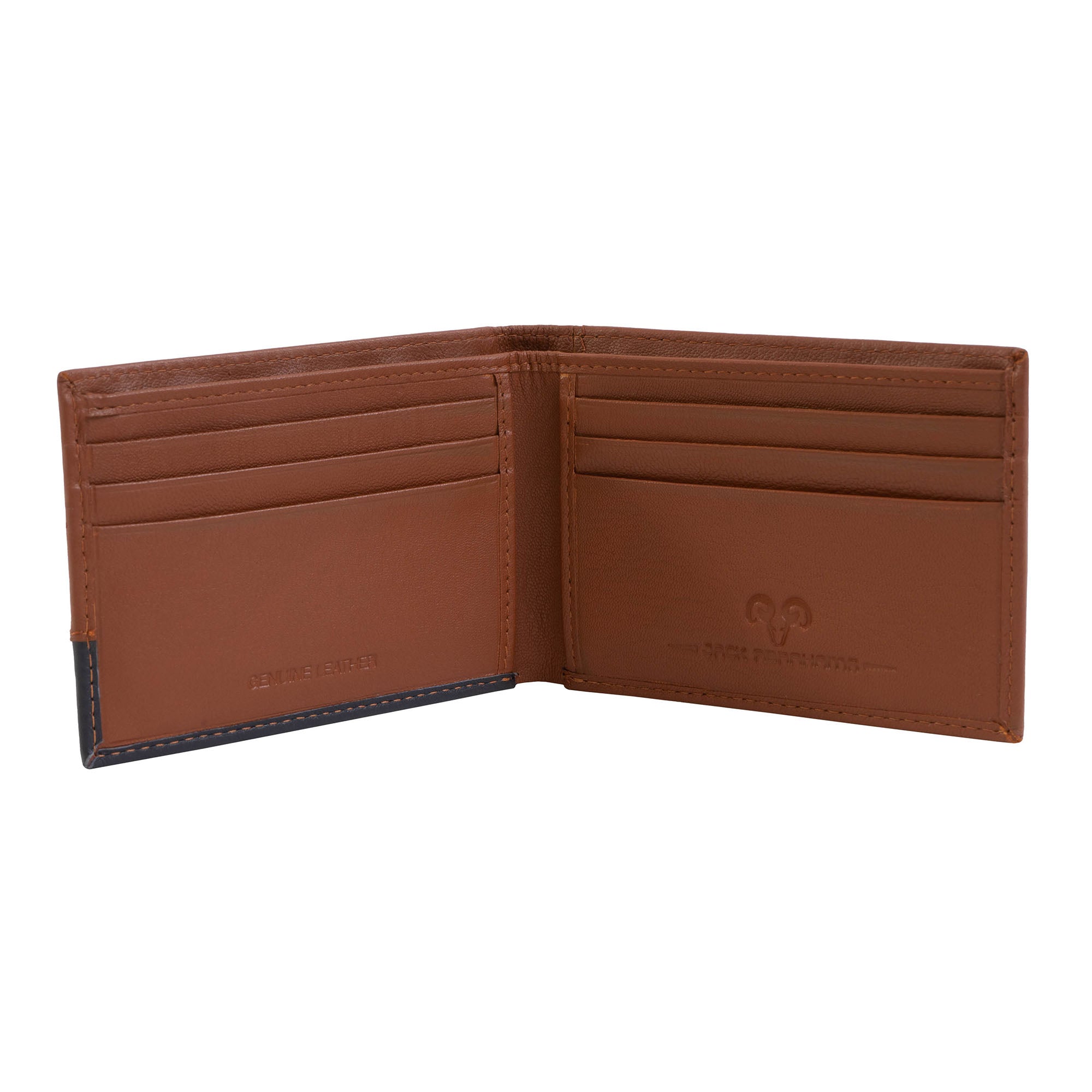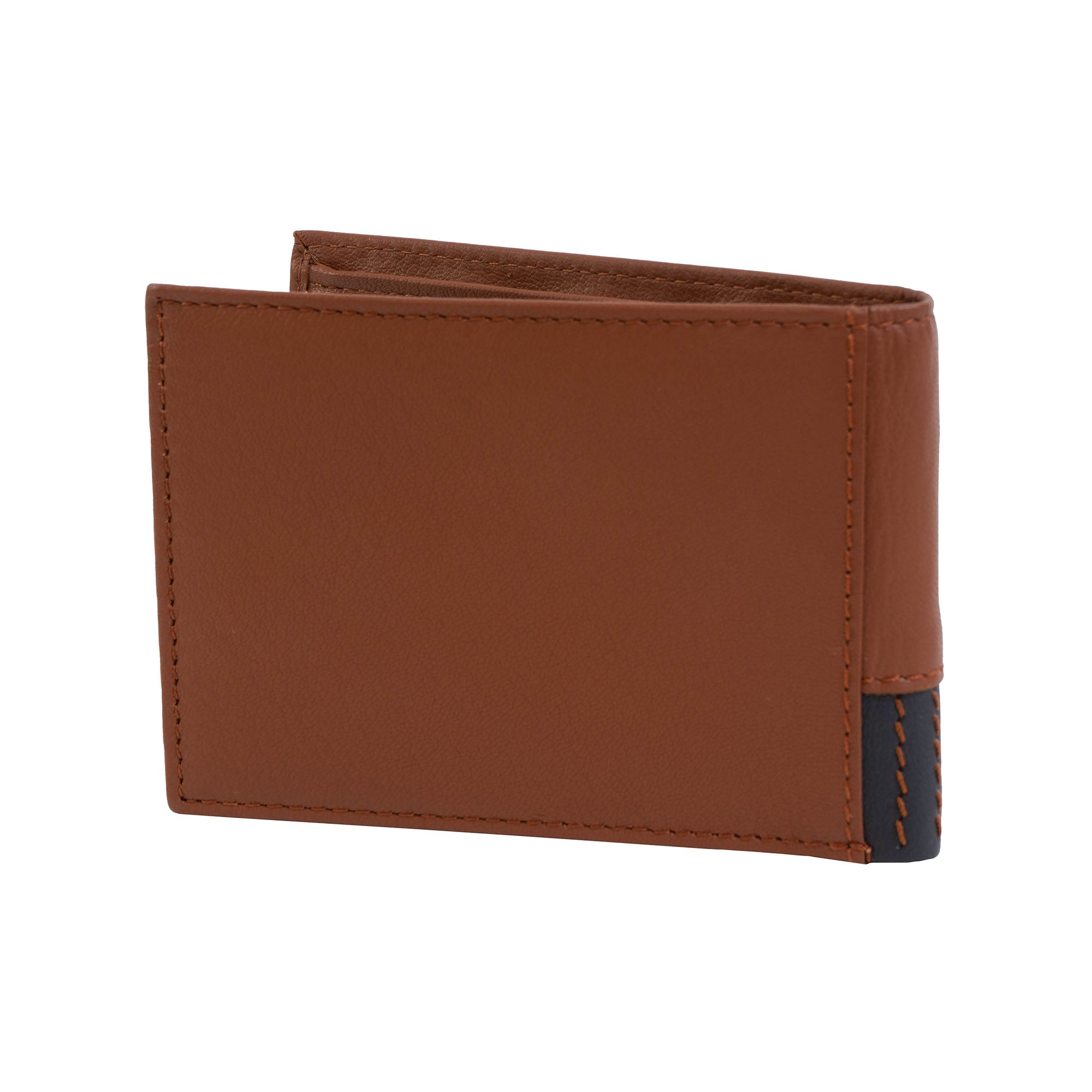 Jack Abrahams Goat Nappa Leather Two Tone Bi-Fold Wallet Cognac/Navy